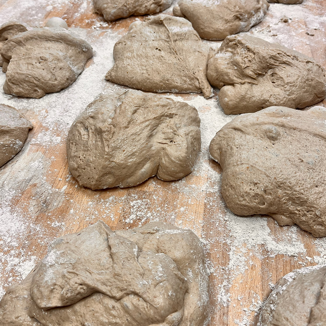 Brotkunst entsteht aus bestem regionalem Mehl, kräftigem Kneten von Hand und der Zeit, die ein Teig braucht, um in aller Ruhe sein volles Aroma zu entfalten.