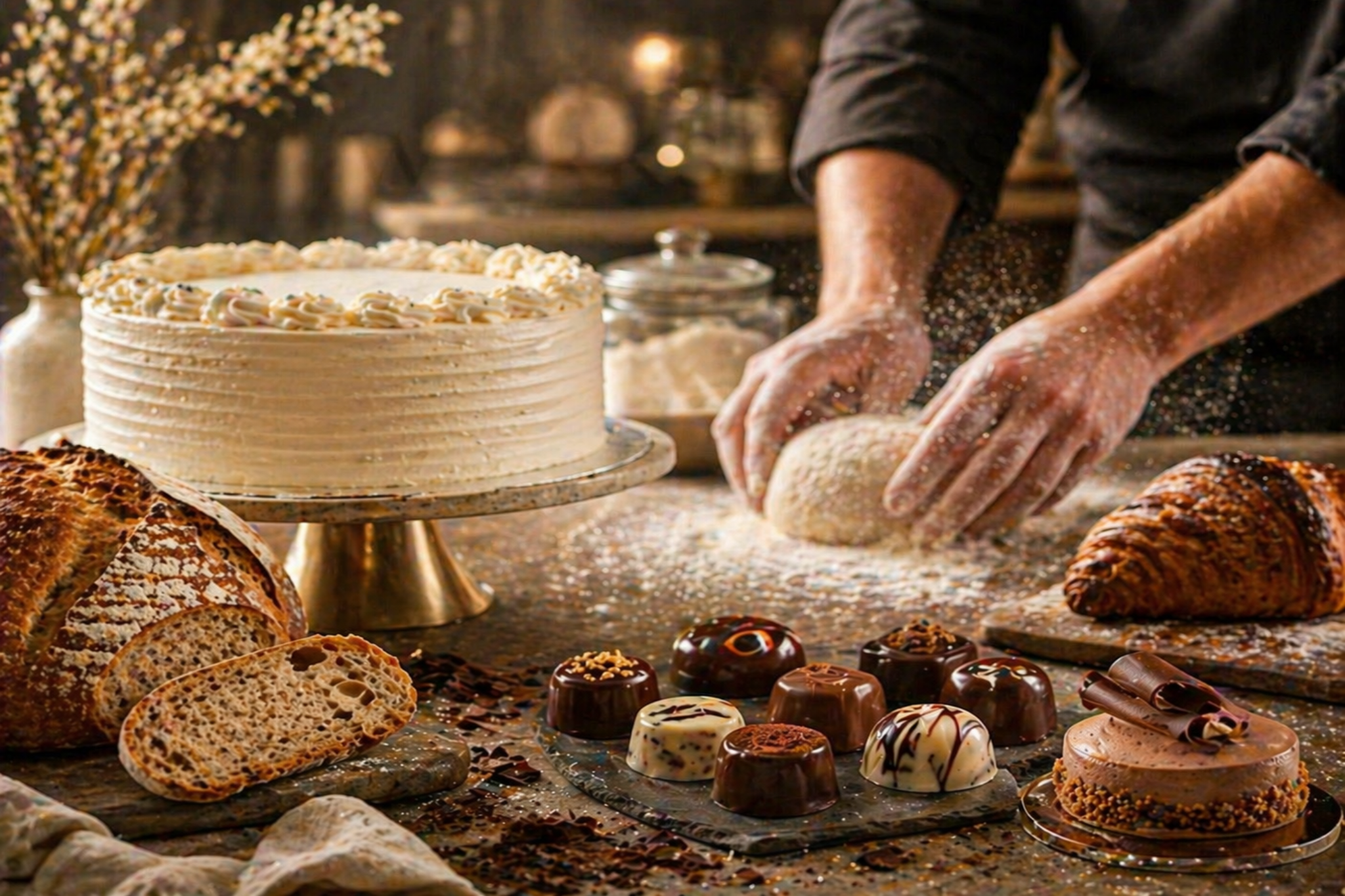 Wir arbeiten mit hochwertigen Rohstoffen wie Butter, Schokolade, Nüssen, echter Vanille und frischen Früchten. Auf Zusatzstoffe wird bewusst verzichtet.